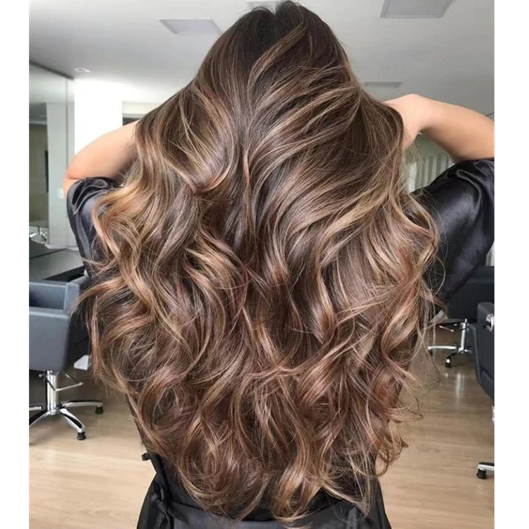 O tom castanho iluminado por reflexos sutis (#4 e #2 brown highlight) cria profundidade e brilho, enquanto a densidade de 250% garante volume marcante e presença inesquecível. A Swiss Lace transparente proporciona encaixe perfeito e natural, permitindo liberdade para pentear sem perder o realismo.